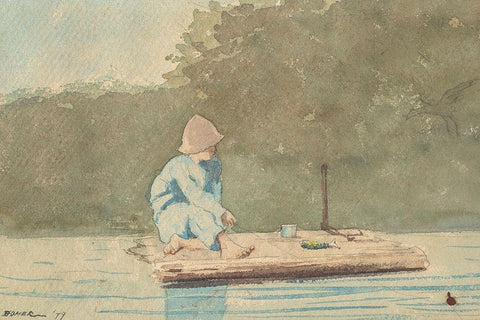 Boy on a Raft Black Ornate Wood Framed Art Print with Double Matting by Homer, Winslow