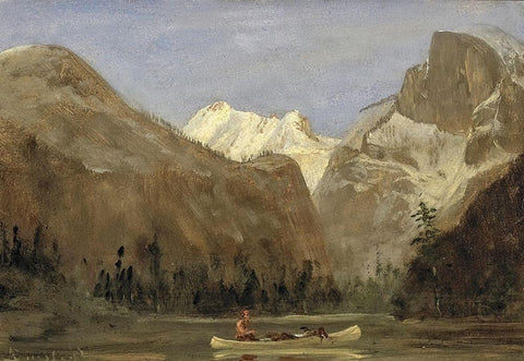 Boating through Yosemite Valley with Half Dome in the Distance Black Ornate Wood Framed Art Print with Double Matting by Bierstadt, Albert
