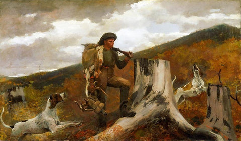 A huntsman and dogs Black Ornate Wood Framed Art Print with Double Matting by Homer, Winslow