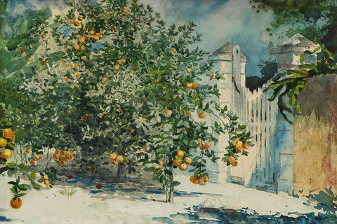 Orange trees and gate Black Ornate Wood Framed Art Print with Double Matting by Homer, Winslow