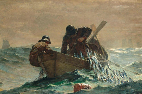 The Herring Net Black Ornate Wood Framed Art Print with Double Matting by Homer, Winslow