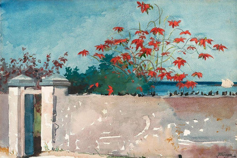 A Wall, Nassau Black Ornate Wood Framed Art Print with Double Matting by Homer, Winslow
