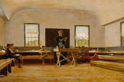 Country School Black Ornate Wood Framed Art Print with Double Matting by Homer, Winslow