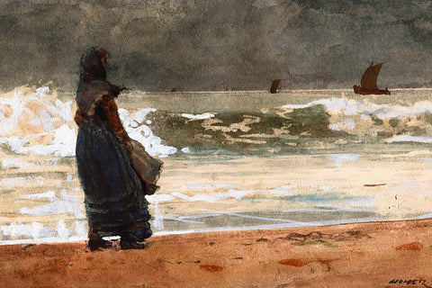 The Watcher, Tynemouth Black Ornate Wood Framed Art Print with Double Matting by Homer, Winslow