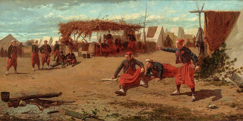 Pitching Quoits Black Ornate Wood Framed Art Print with Double Matting by Homer, Winslow