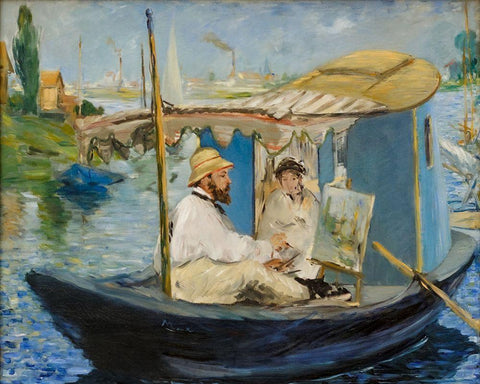 Claude Monet in Argenteuil Black Ornate Wood Framed Art Print with Double Matting by Manet, Edouard