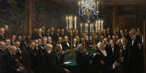A meeting in the Royal Danish Academy of Sciences and Letters Black Ornate Wood Framed Art Print with Double Matting by Kroyer, Peder Severin