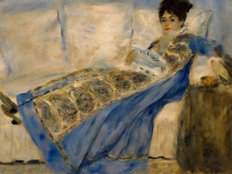 Madame Claude Monet Black Ornate Wood Framed Art Print with Double Matting by Renoir, Pierre-Auguste