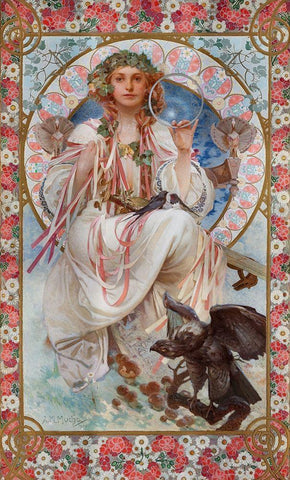 Josephine Crane Bradley as Slavia Black Ornate Wood Framed Art Print with Double Matting by Mucha, Alphonse