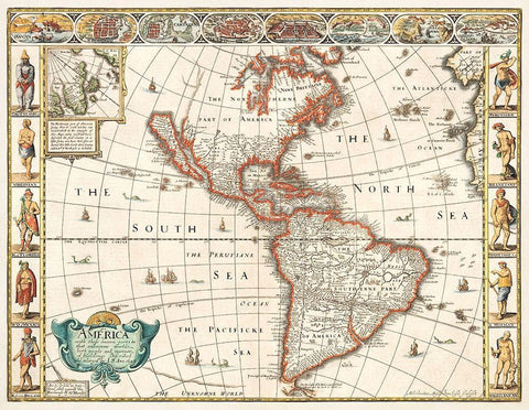 America 1627 Black Ornate Wood Framed Art Print with Double Matting by Speed, John