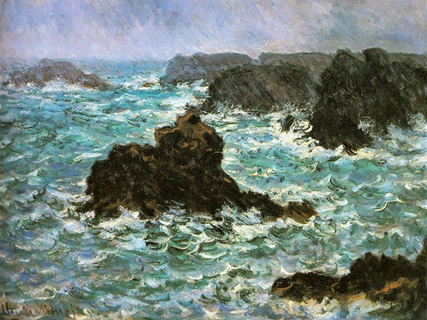 Belle Ile-rain effect 1886 Black Ornate Wood Framed Art Print with Double Matting by Monet, Claude