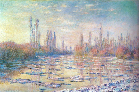 Floating ice on Seine 1880 Black Ornate Wood Framed Art Print with Double Matting by Monet, Claude