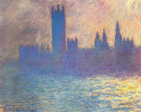 Houses of Parliament-Sunlight 1900 Black Ornate Wood Framed Art Print with Double Matting by Monet, Claude