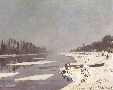 Ice on the Seine at Bougival 1868 Black Ornate Wood Framed Art Print with Double Matting by Monet, Claude
