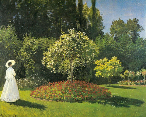 Jeanne-Marguerite Lecadre in Garden 1866 Black Ornate Wood Framed Art Print with Double Matting by Monet, Claude