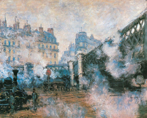 La Gare St-Lazare-Pont de LEurope 1877 Black Ornate Wood Framed Art Print with Double Matting by Monet, Claude