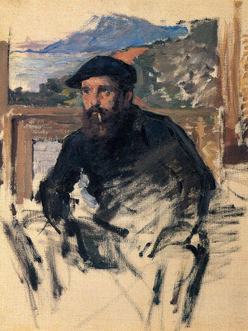 Portrait of the artist in studio 1884 Black Ornate Wood Framed Art Print with Double Matting by Monet, Claude