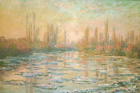 The Ice-floes 1893 Black Ornate Wood Framed Art Print with Double Matting by Monet, Claude