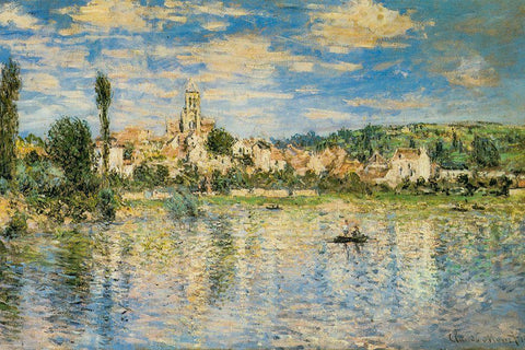 Vetheuil in Winter 1879 Black Ornate Wood Framed Art Print with Double Matting by Monet, Claude