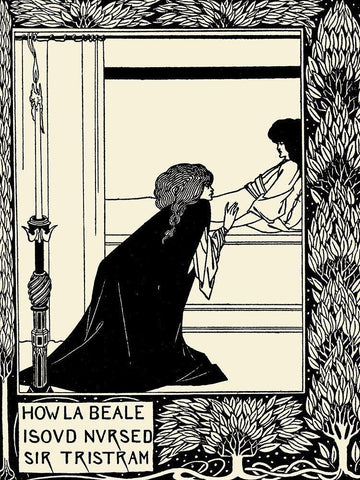 Morte DArthur 1893 - How La Beale Isoud Nursed Sir Tristram Black Ornate Wood Framed Art Print with Double Matting by Beardsley, Aubrey
