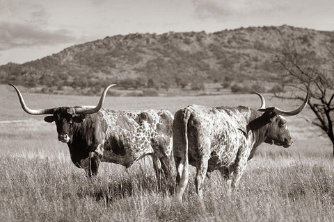 Longhorn cattle Sepia Black Ornate Wood Framed Art Print with Double Matting by Fitzharris, Tim