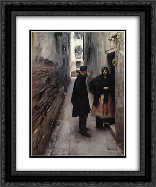 A Street in Venice 20x24 Black Ornate Wood Framed Art Print Poster with Double Matting by Sargent, John Singer