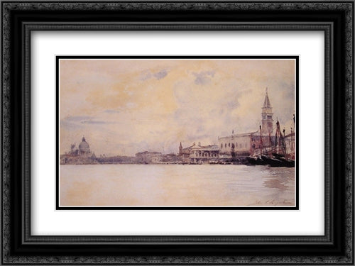 The Entrance to the Grand Canal, Venice 24x18 Black Ornate Wood Framed Art Print Poster with Double Matting by Sargent, John Singer