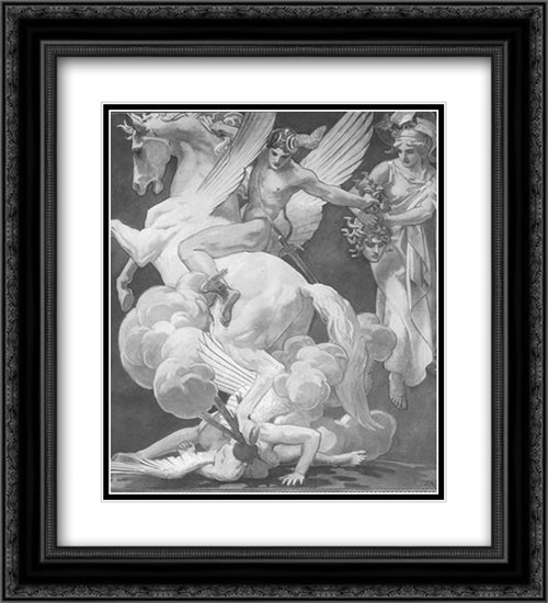 Perseus on Pegasus Slaying Medusa 20x22 Black Ornate Wood Framed Art Print Poster with Double Matting by Sargent, John Singer