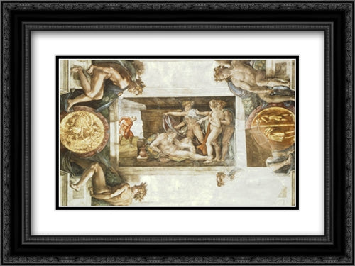 Noah's Drunkenness 24x18 Black Ornate Wood Framed Art Print Poster with Double Matting by Michelangelo