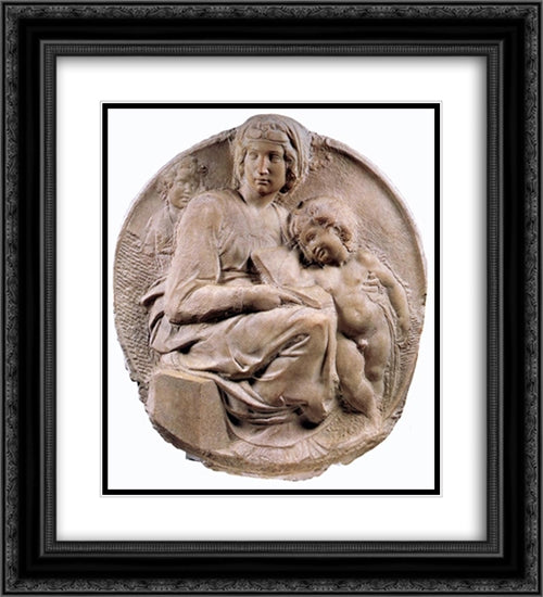 Madonna (Tondo Pitti) 20x22 Black Ornate Wood Framed Art Print Poster with Double Matting by Michelangelo