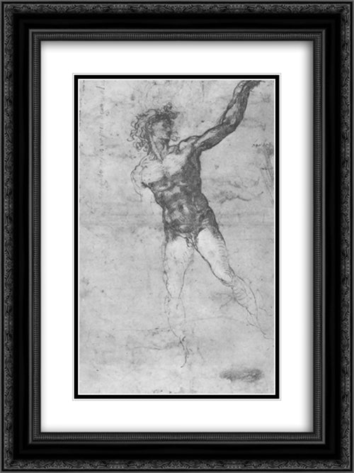 Male nude, study for the Battle of Cascina 18x24 Black Ornate Wood Framed Art Print Poster with Double Matting by Michelangelo
