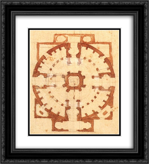 Plan for a Church 20x22 Black Ornate Wood Framed Art Print Poster with Double Matting by Michelangelo