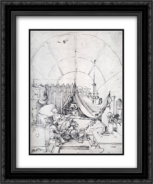 Lying-In Room 20x24 Black Ornate Wood Framed Art Print Poster with Double Matting by Durer, Albrecht