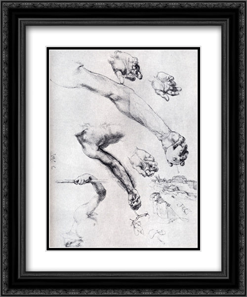 Three Studies From Nature For Adam's Arms In The 1504 20x24 Black Ornate Wood Framed Art Print Poster with Double Matting by Durer, Albrecht