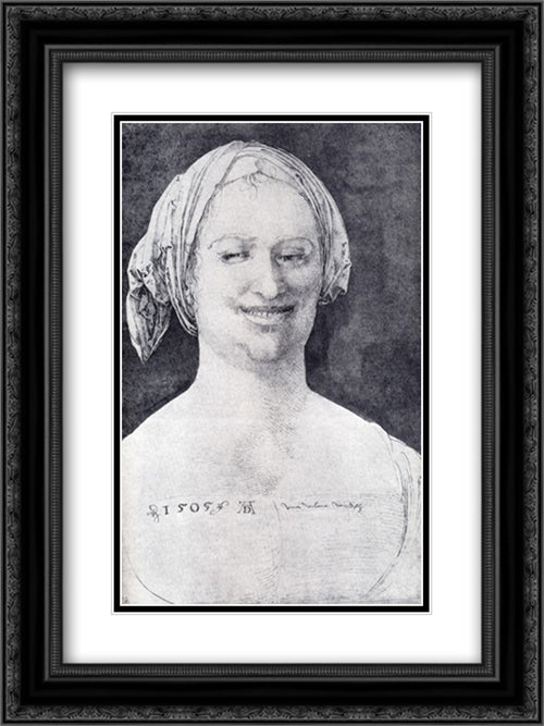 Laughing Peasant Woman 18x24 Black Ornate Wood Framed Art Print Poster with Double Matting by Durer, Albrecht