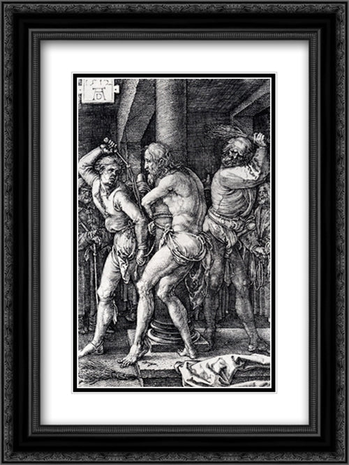 Flagellation (Engraved Passion) 18x24 Black Ornate Wood Framed Art Print Poster with Double Matting by Durer, Albrecht