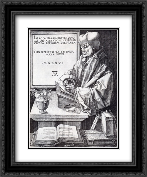 Erasmus Of Rotterdam 20x24 Black Ornate Wood Framed Art Print Poster with Double Matting by Durer, Albrecht