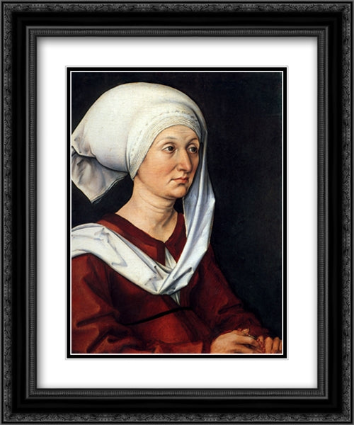 Portrait of Barbara Durer 20x24 Black Ornate Wood Framed Art Print Poster with Double Matting by Durer, Albrecht