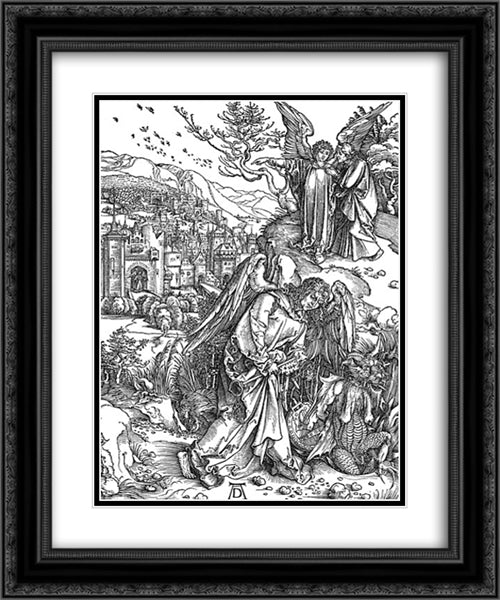 Angel with the Key to the Bottomless Pit 20x24 Black Ornate Wood Framed Art Print Poster with Double Matting by Durer, Albrecht