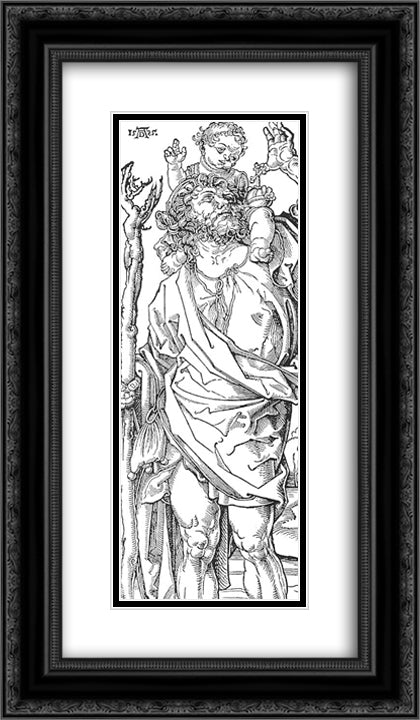 St. Christopher Carrying the Christ Child 14x24 Black Ornate Wood Framed Art Print Poster with Double Matting by Durer, Albrecht