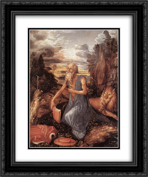 St Jerome in the Wilderness 20x24 Black Ornate Wood Framed Art Print Poster with Double Matting by Durer, Albrecht