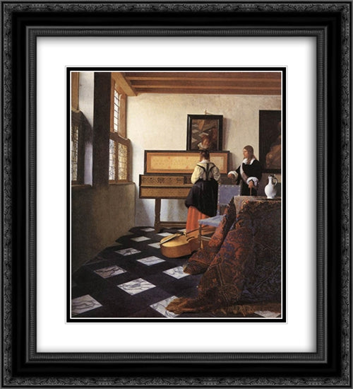A Lady at the Virginals with a Gentleman 20x22 Black Ornate Wood Framed Art Print Poster with Double Matting by Vermeer, Johannes