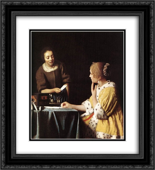 Lady with Her Maidservant Holding a Letter 20x22 Black Ornate Wood Framed Art Print Poster with Double Matting by Vermeer, Johannes