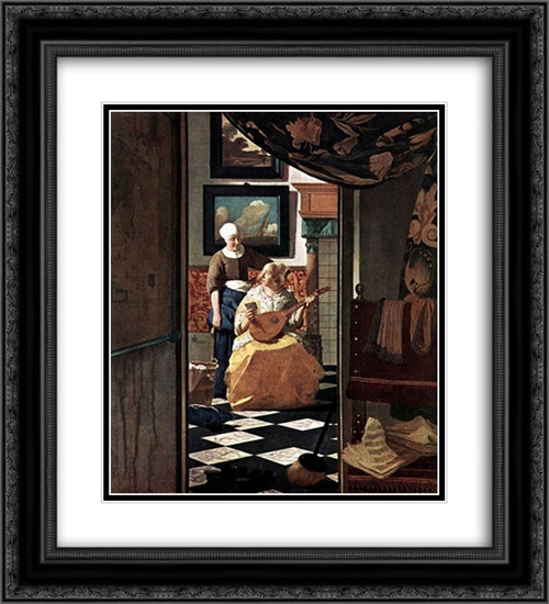 The Love Letter 20x22 Black Ornate Wood Framed Art Print Poster with Double Matting by Vermeer, Johannes
