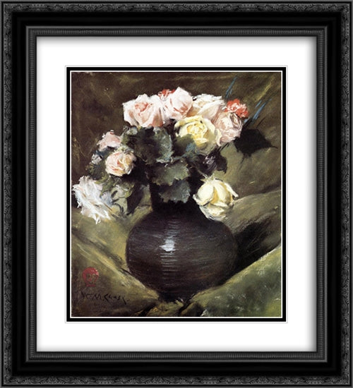 Flowers 20x22 Black Ornate Wood Framed Art Print Poster with Double Matting by Chase, William Merritt