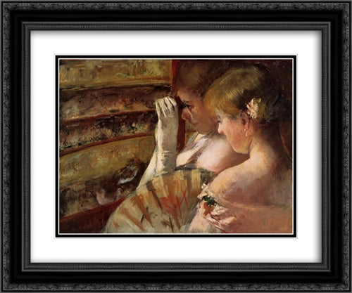 A Corner of the Loge 24x20 Black Ornate Wood Framed Art Print Poster with Double Matting by Cassatt, Mary