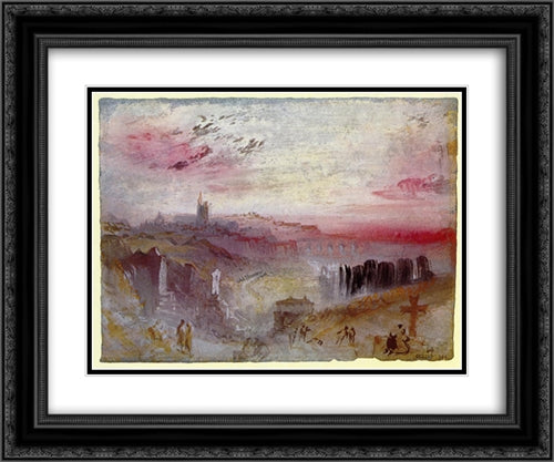 View over Town at Suset: a Cemetery in the Foreground 24x20 Black Ornate Wood Framed Art Print Poster with Double Matting by Turner, Joseph Mallord William