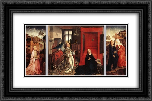 Annunciation Triptych 24x16 Black Ornate Wood Framed Art Print Poster with Double Matting by van der Weyden, Rogier