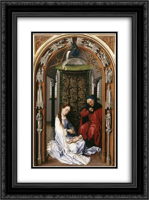 Miraflores Altarpiece: left panel 18x24 Black Ornate Wood Framed Art Print Poster with Double Matting by van der Weyden, Rogier