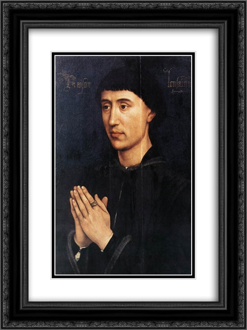 Portrait Diptych of Laurent Froimont: right wing 18x24 Black Ornate Wood Framed Art Print Poster with Double Matting by van der Weyden, Rogier